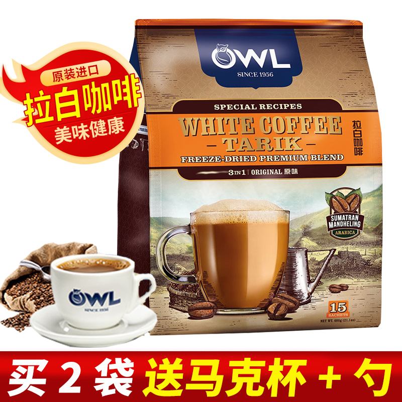 马来西亚 owl 猫头鹰白 咖啡 三合一速溶 咖啡 粉拉白系列榛果二合一.